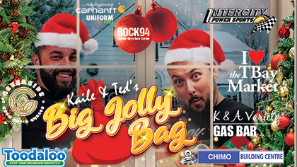 Rock 94, K&A Variety & Gas Bar, Thunder Bay Country Market, and Intercity Power Sports are making the holidays bigger... and a whole lot jollier... with Kaile & Ted's Big Jolly Bag!